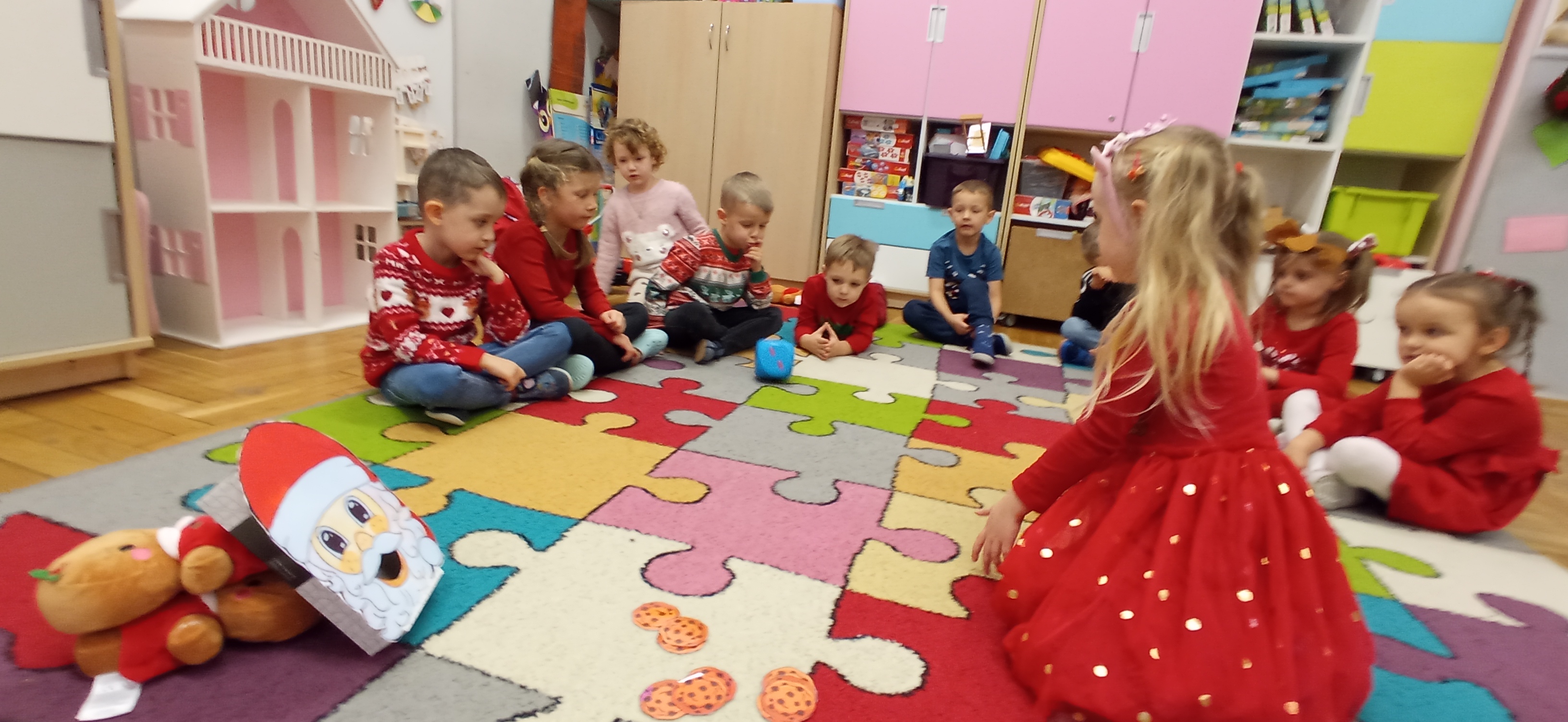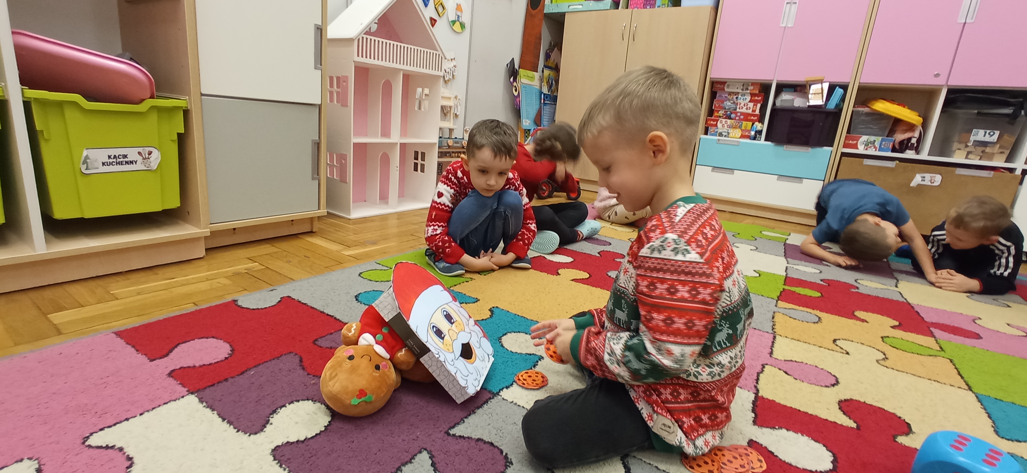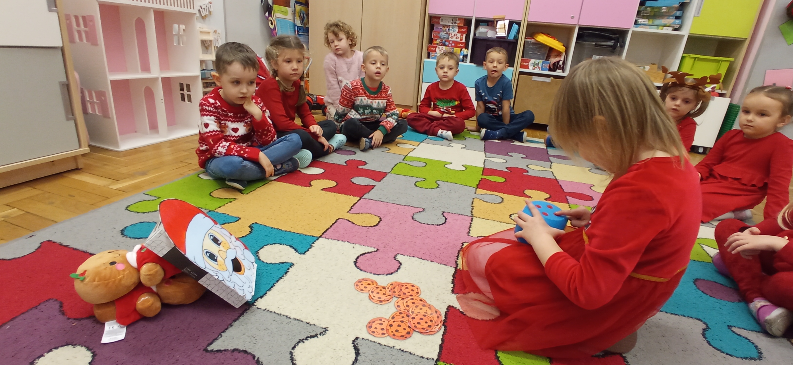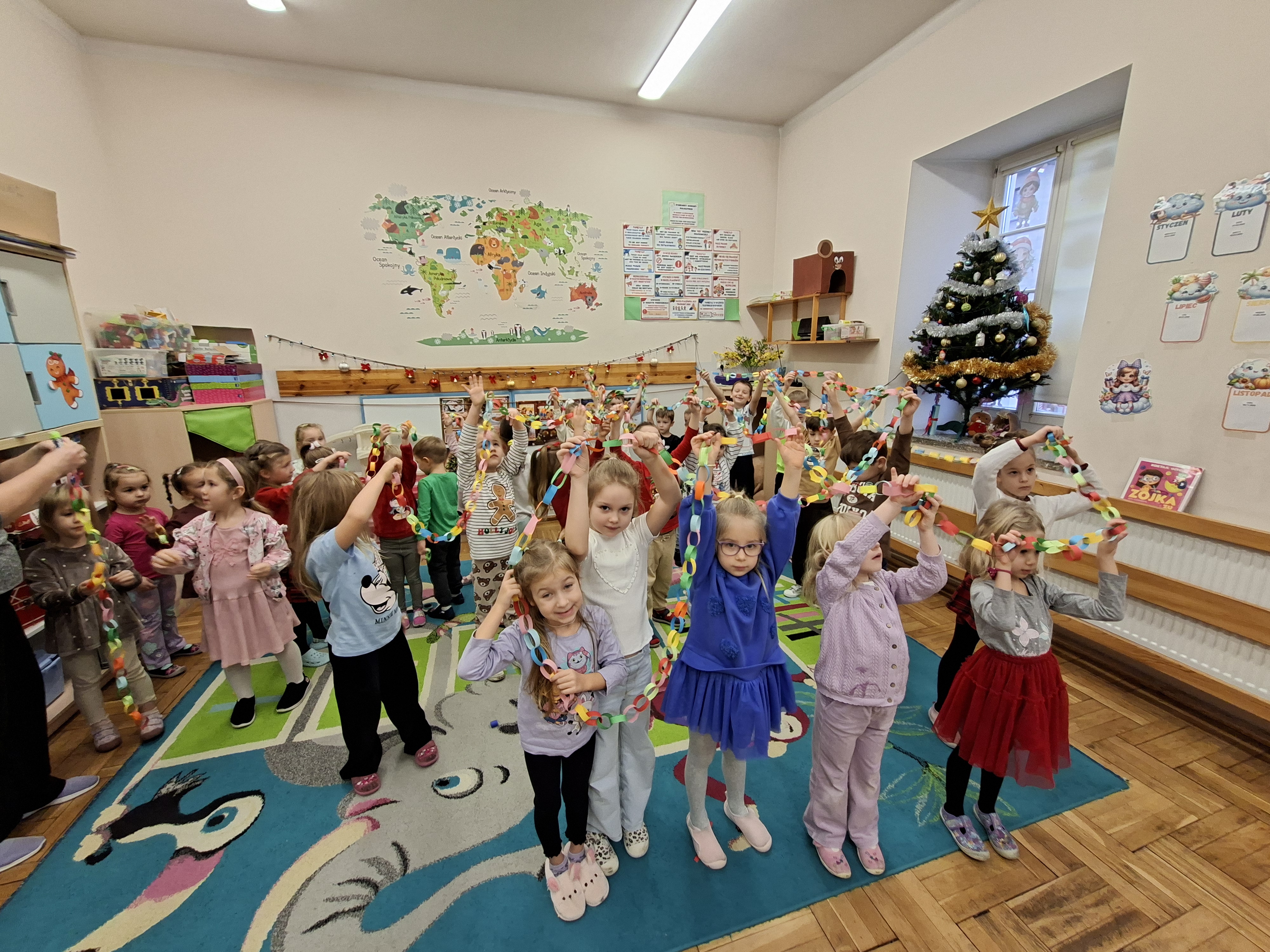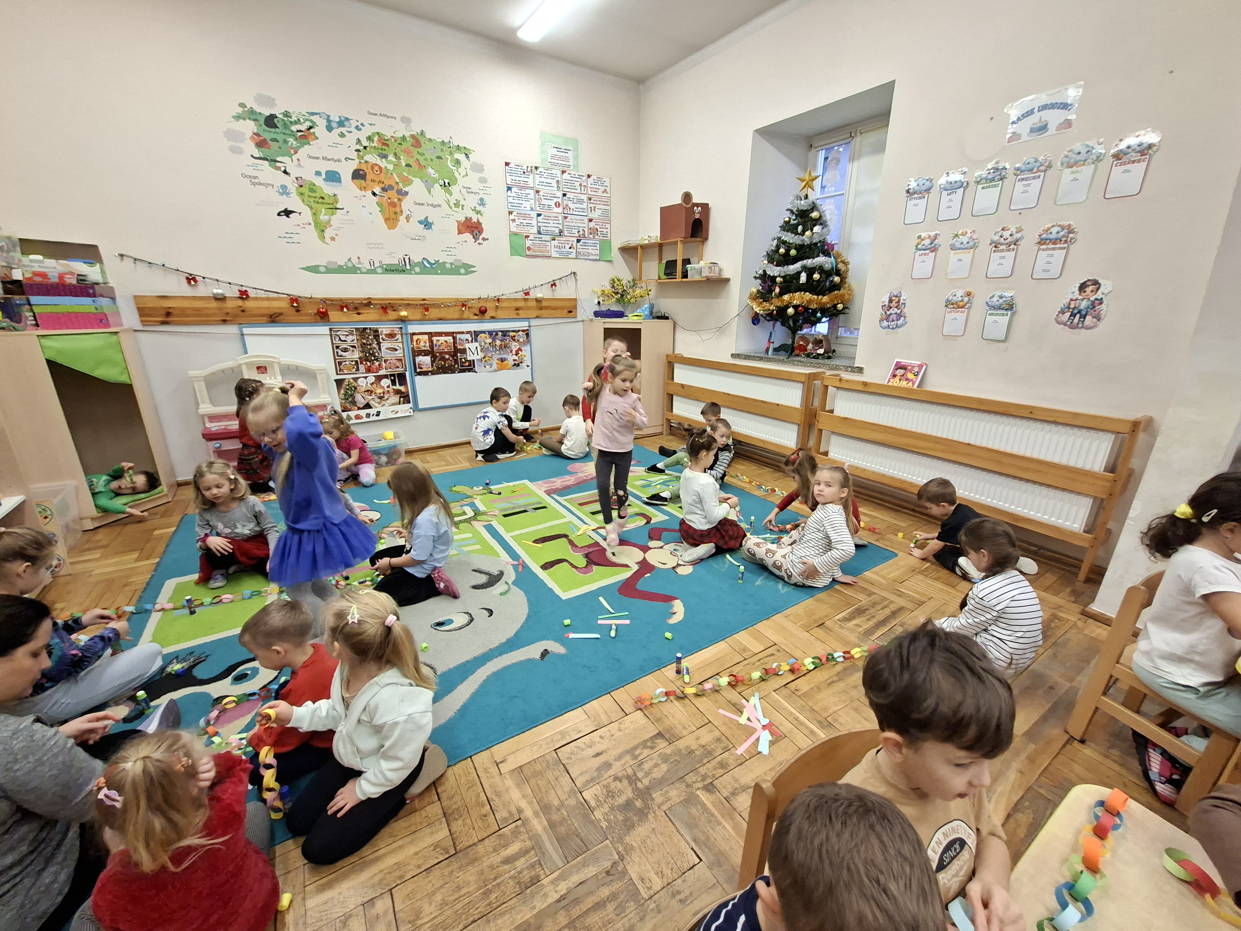 Grudzień, to przede wszystkim czas przygotowań do świąt Bożego Narodzenia. Uczenie się ról na występ, tworzenie świątecznych dekoracji. Dekorowanie pierniczków, ubieranie choinki. Rozmowy na temat tradycji bożonarodzeniowych.