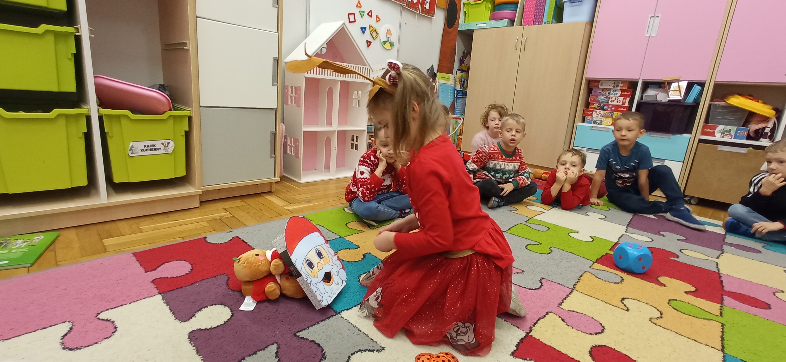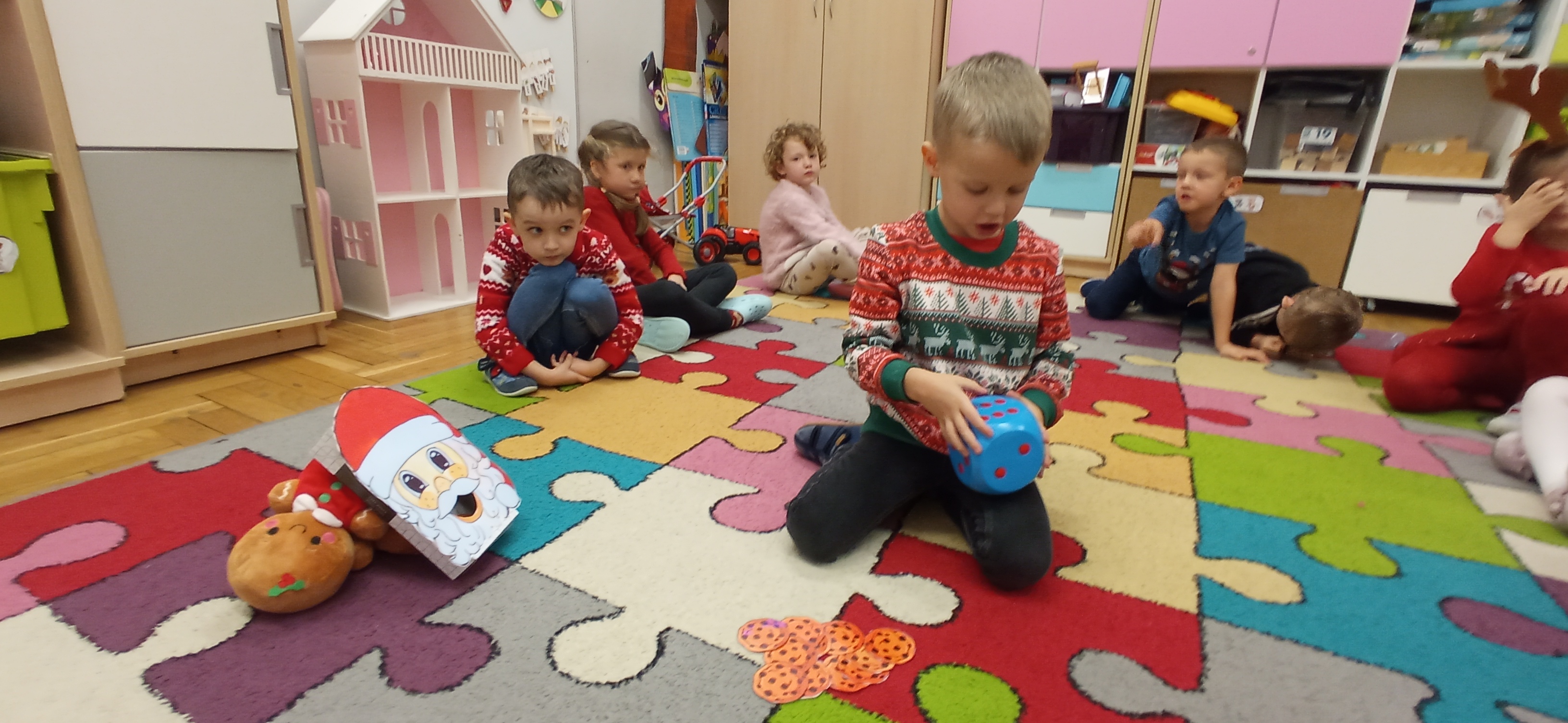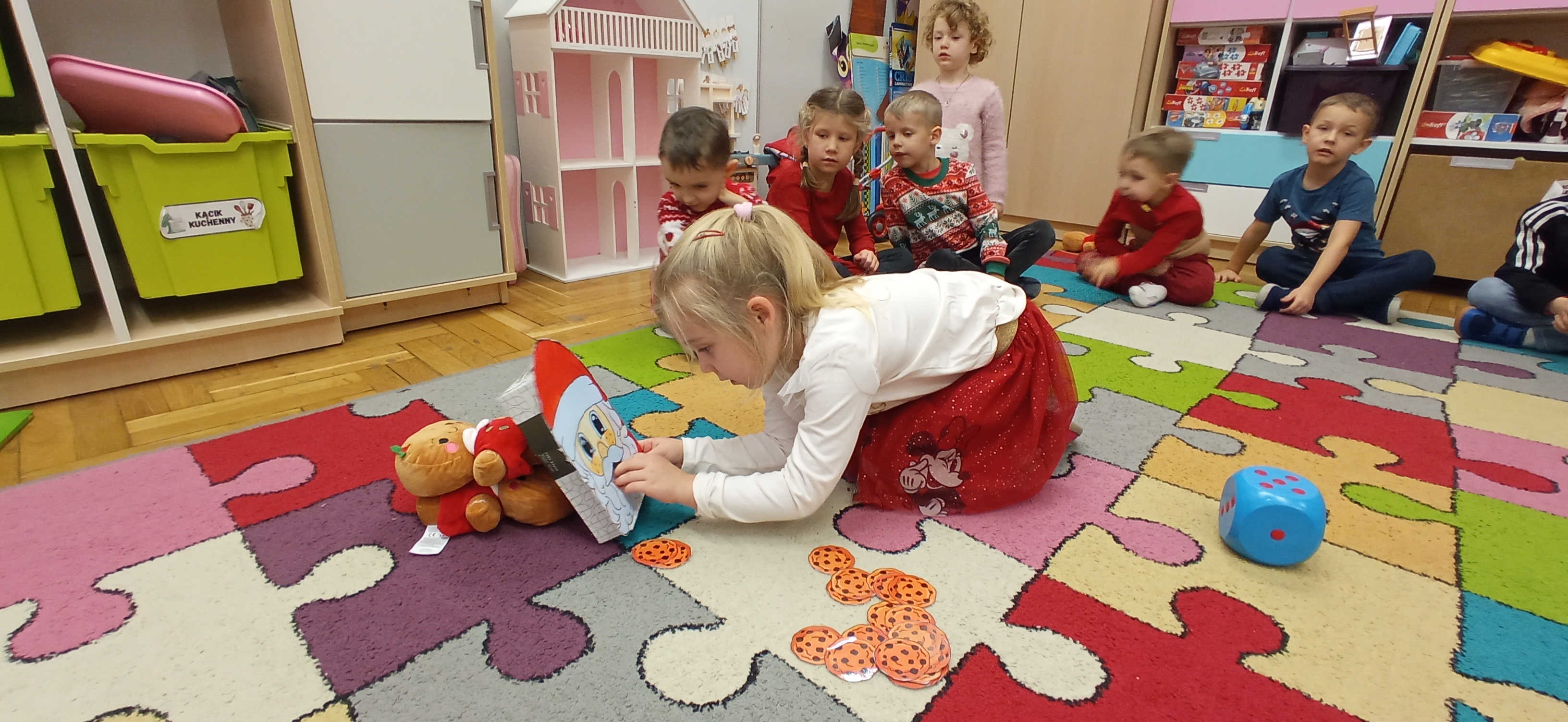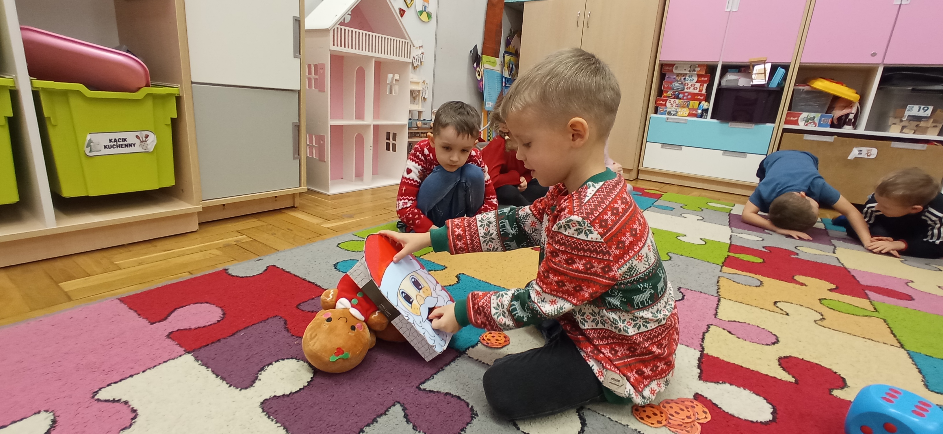 Grudzień, to przede wszystkim czas przygotowań do świąt Bożego Narodzenia. Uczenie się ról na występ, tworzenie świątecznych dekoracji. Dekorowanie pierniczków, ubieranie choinki. Rozmowy na temat tradycji bożonarodzeniowych.