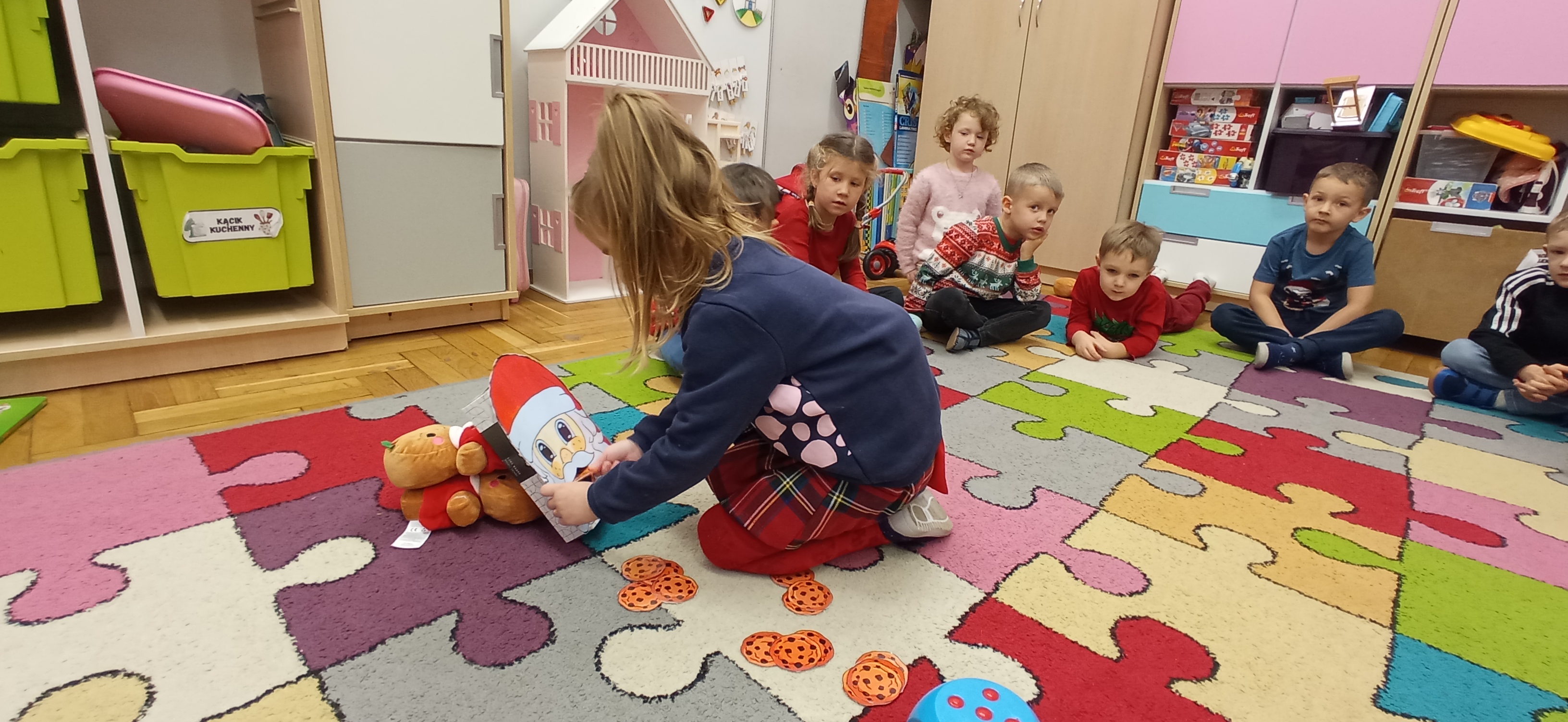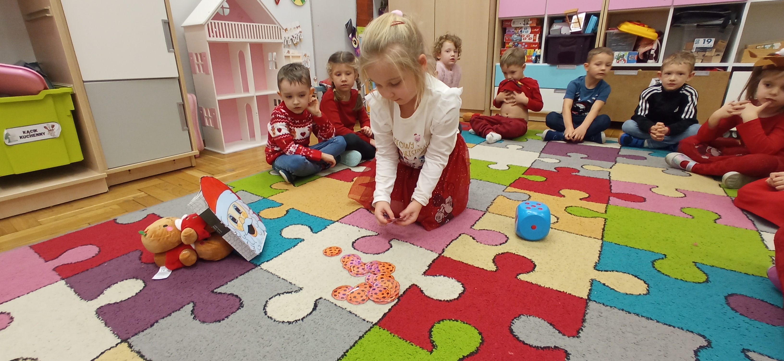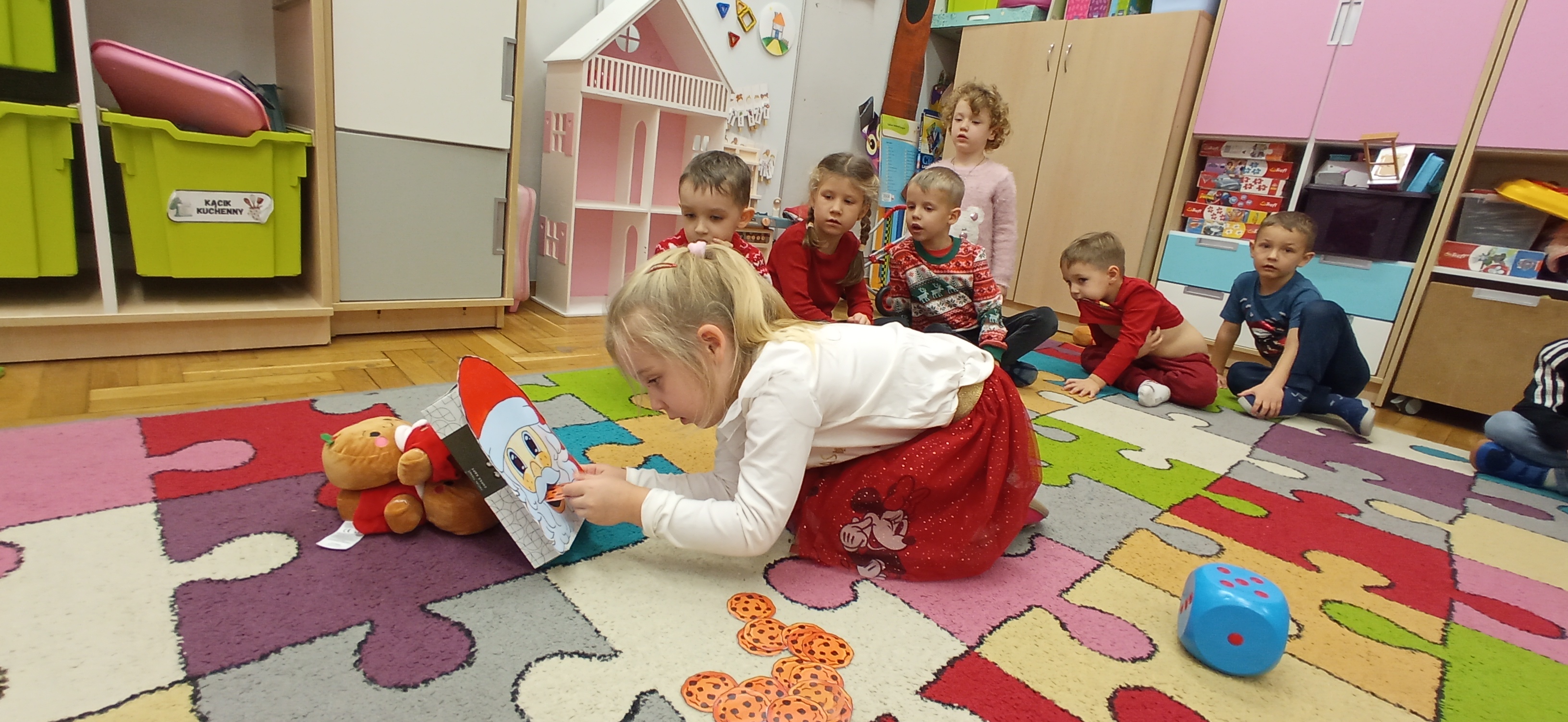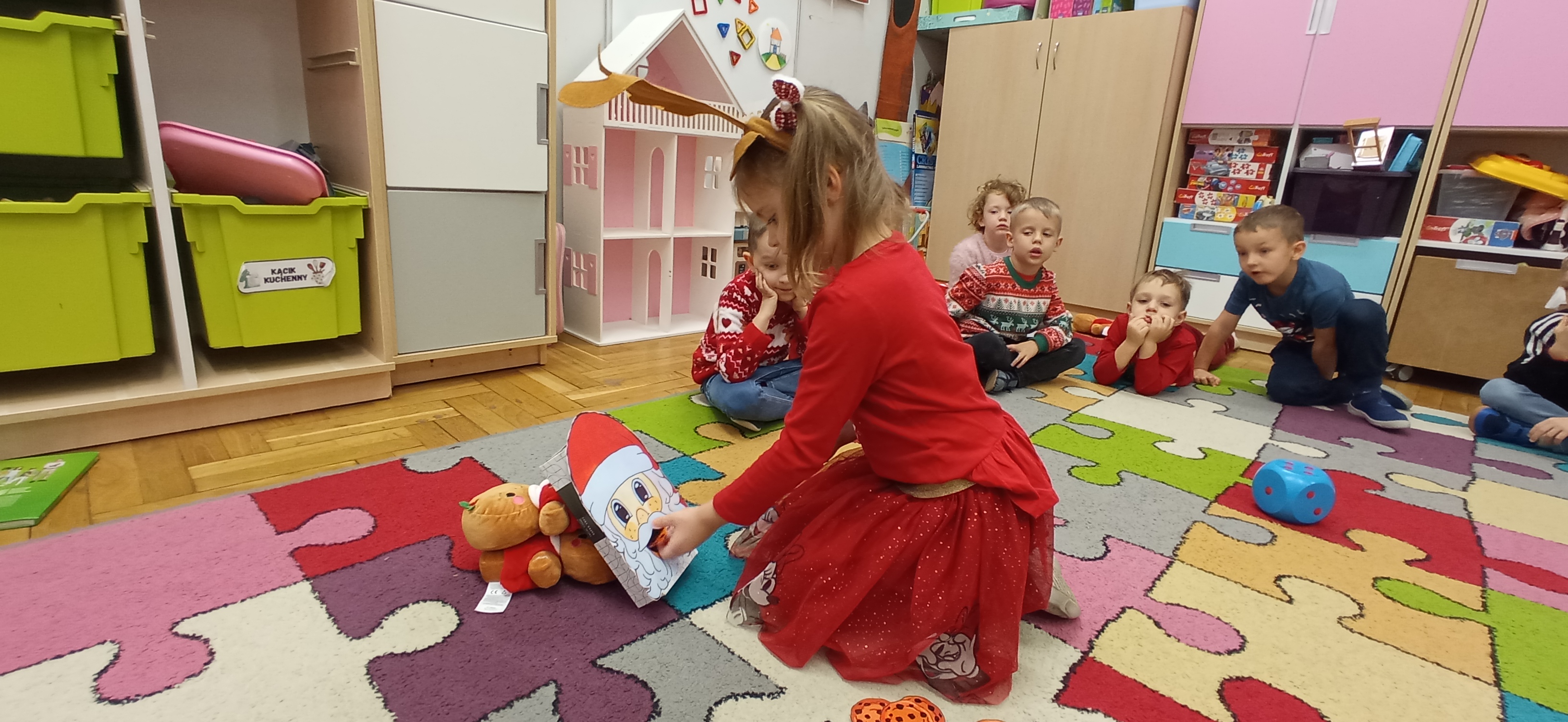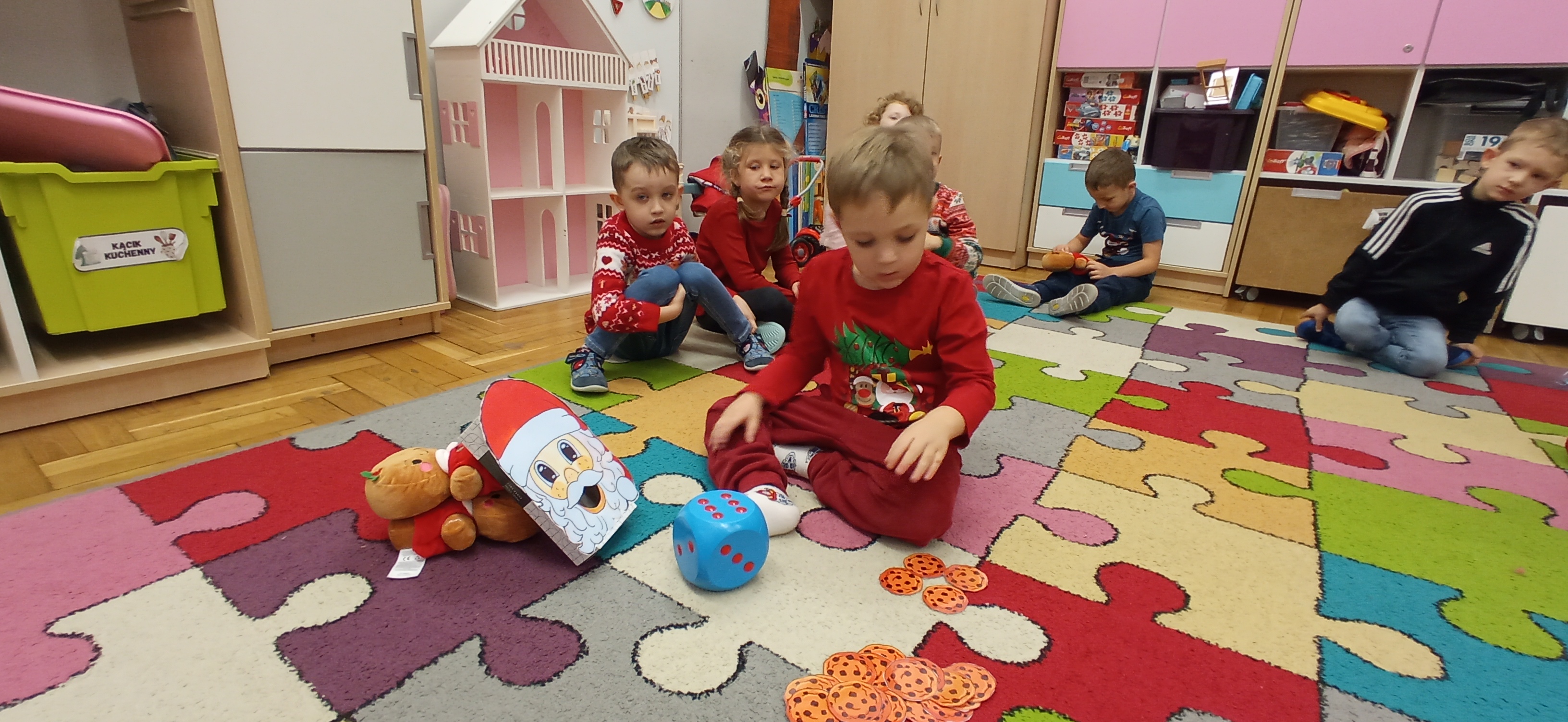 Grudzień, to przede wszystkim czas przygotowań do świąt Bożego Narodzenia. Uczenie się ról na występ, tworzenie świątecznych dekoracji. Dekorowanie pierniczków, ubieranie choinki. Rozmowy na temat tradycji bożonarodzeniowych.