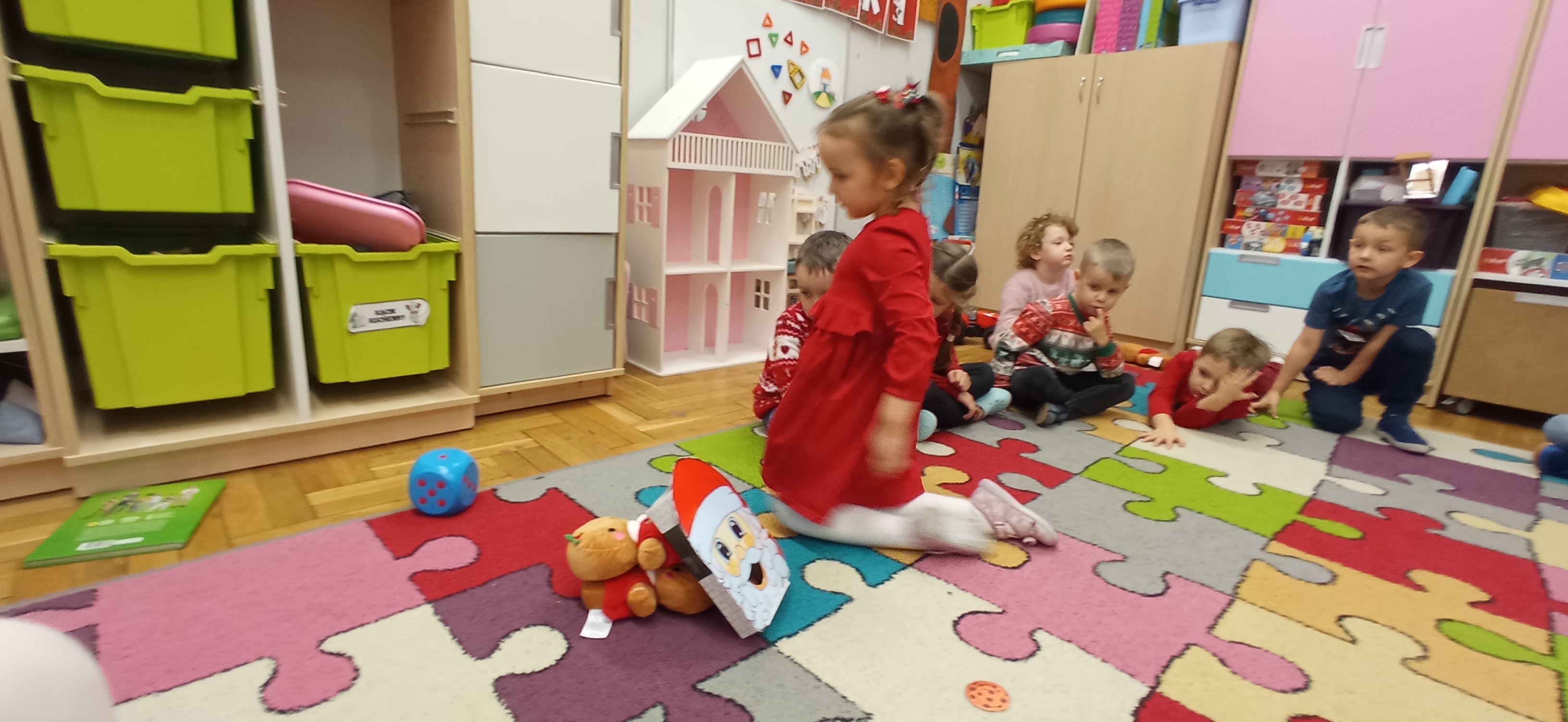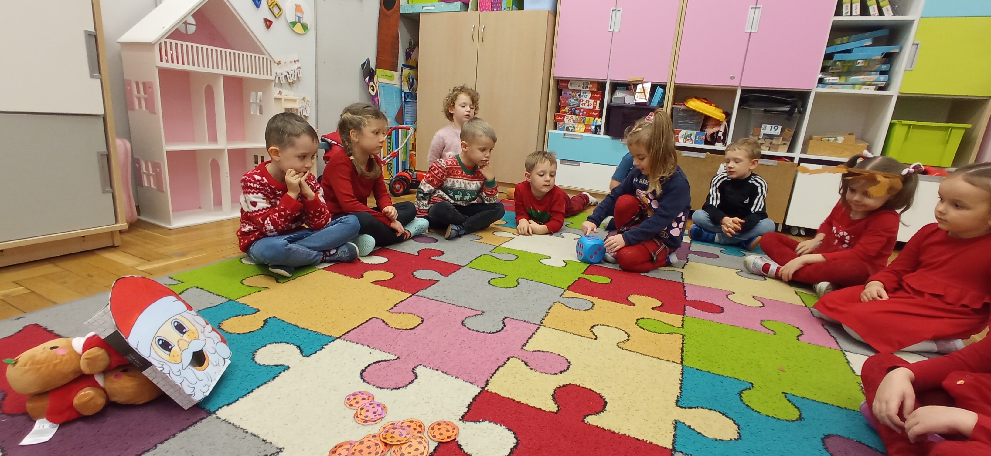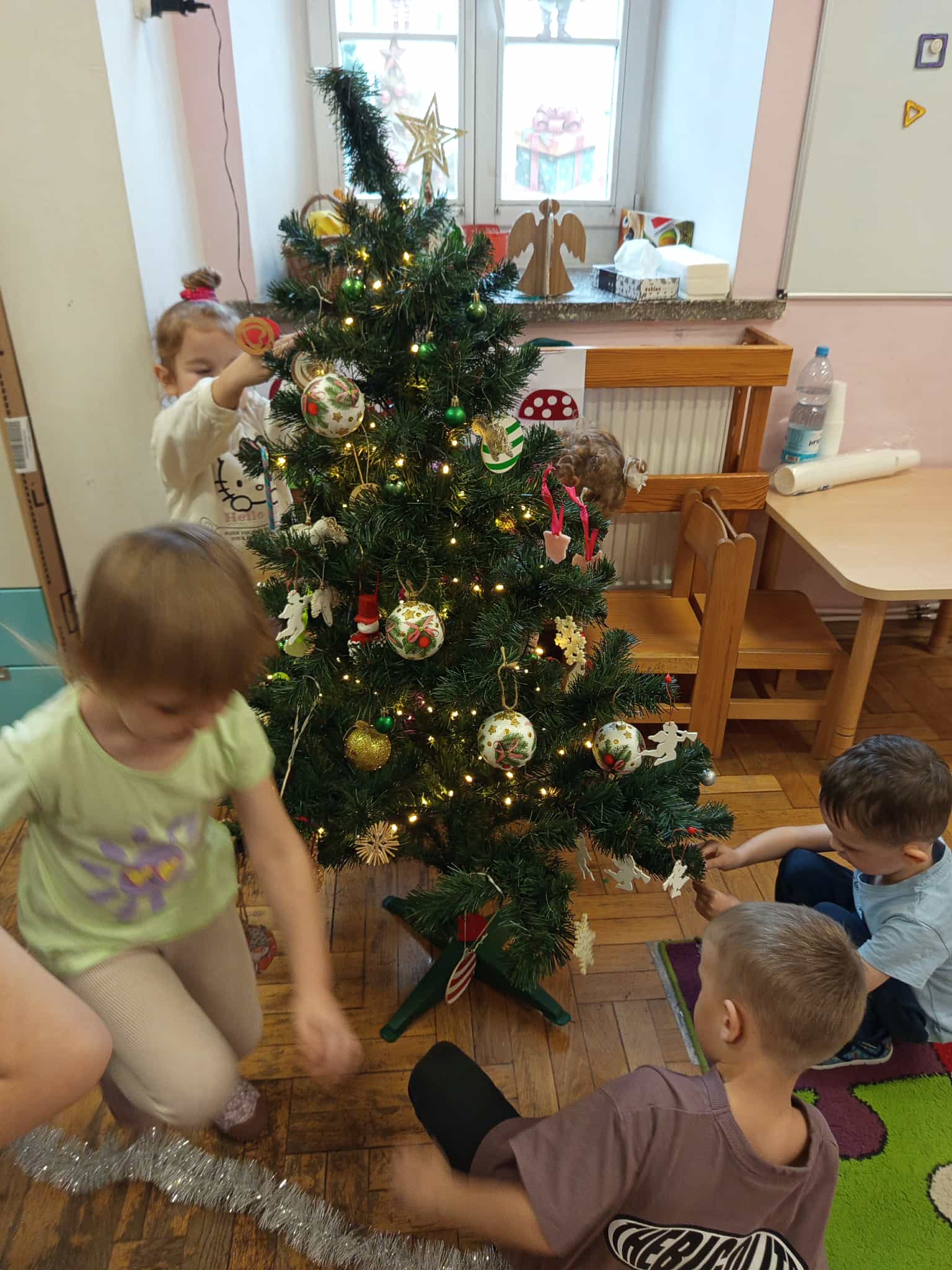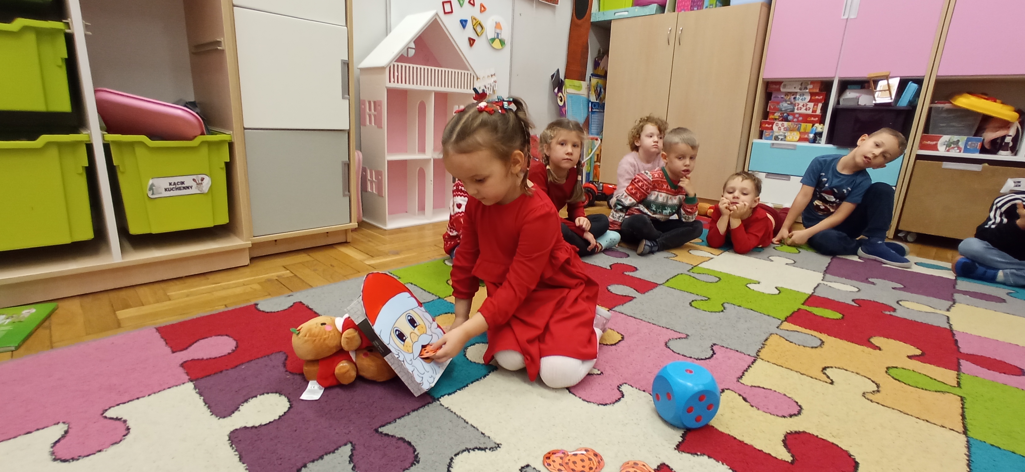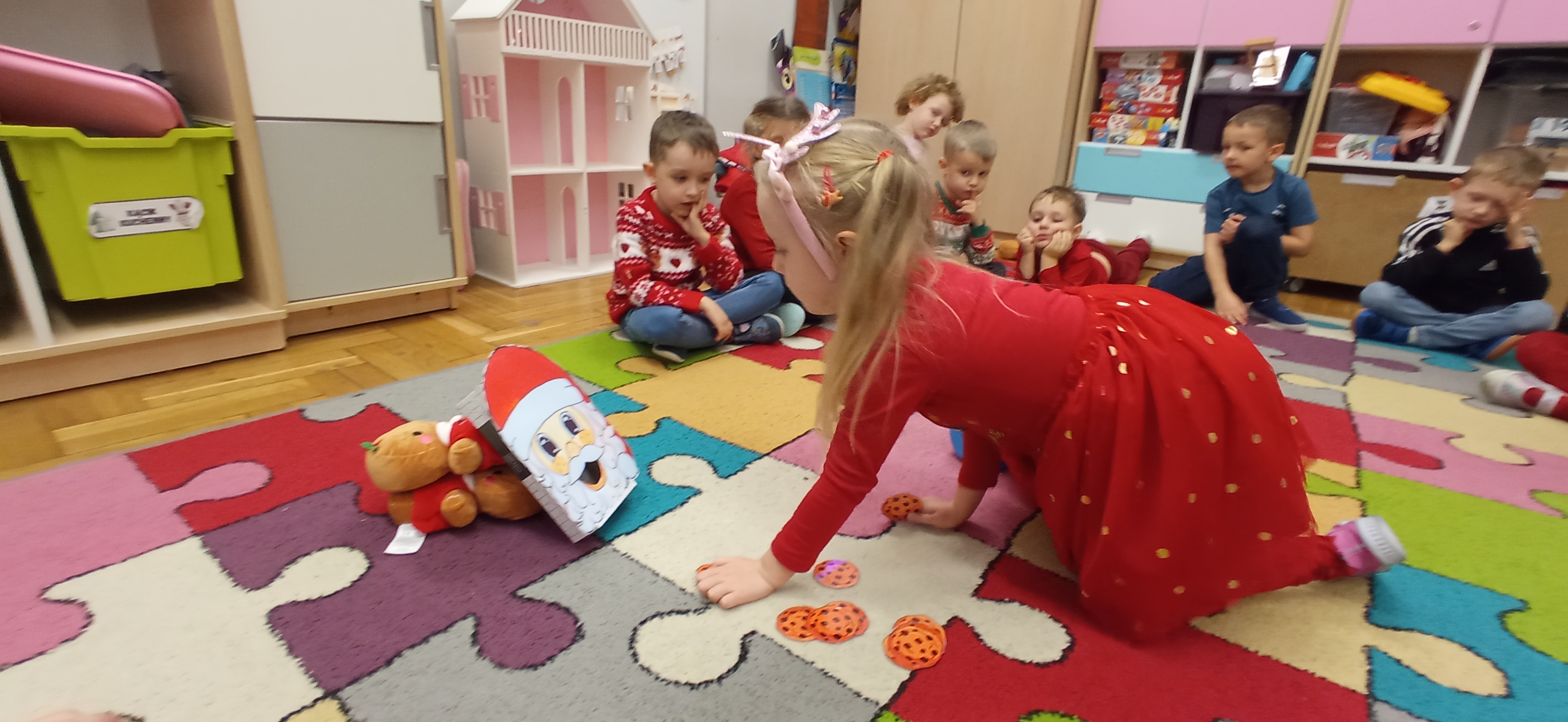Grudzień, to przede wszystkim czas przygotowań do świąt Bożego Narodzenia. Uczenie się ról na występ, tworzenie świątecznych dekoracji. Dekorowanie pierniczków, ubieranie choinki. Rozmowy na temat tradycji bożonarodzeniowych.