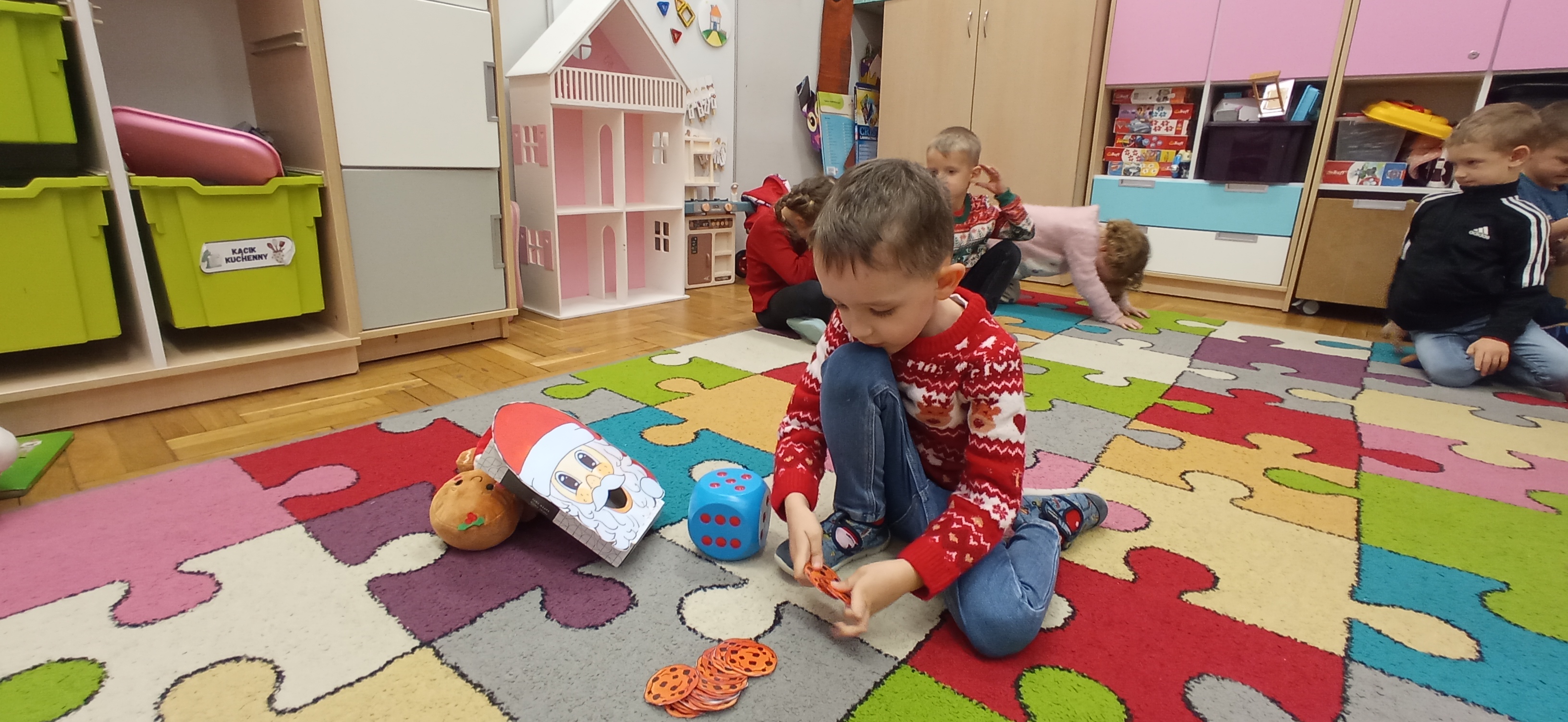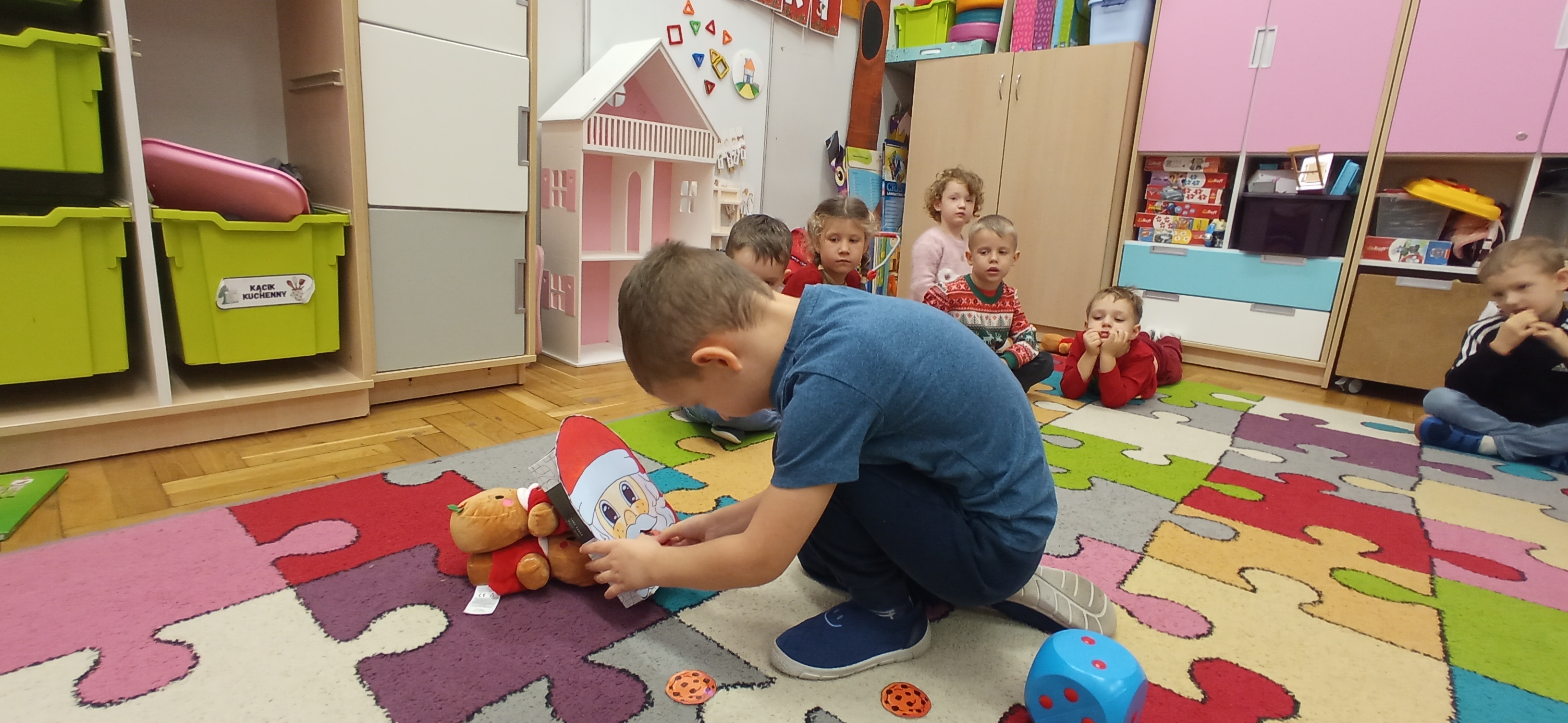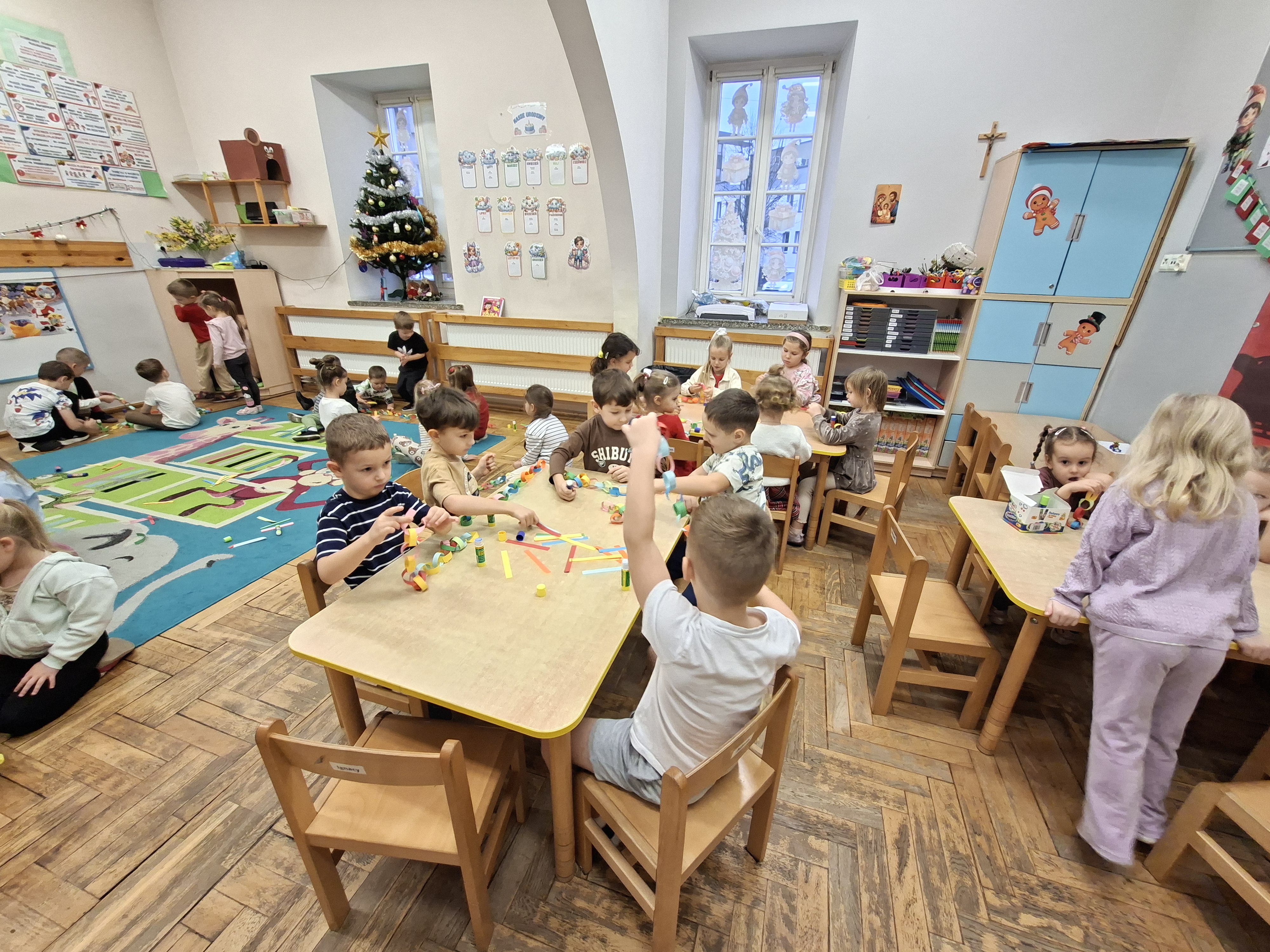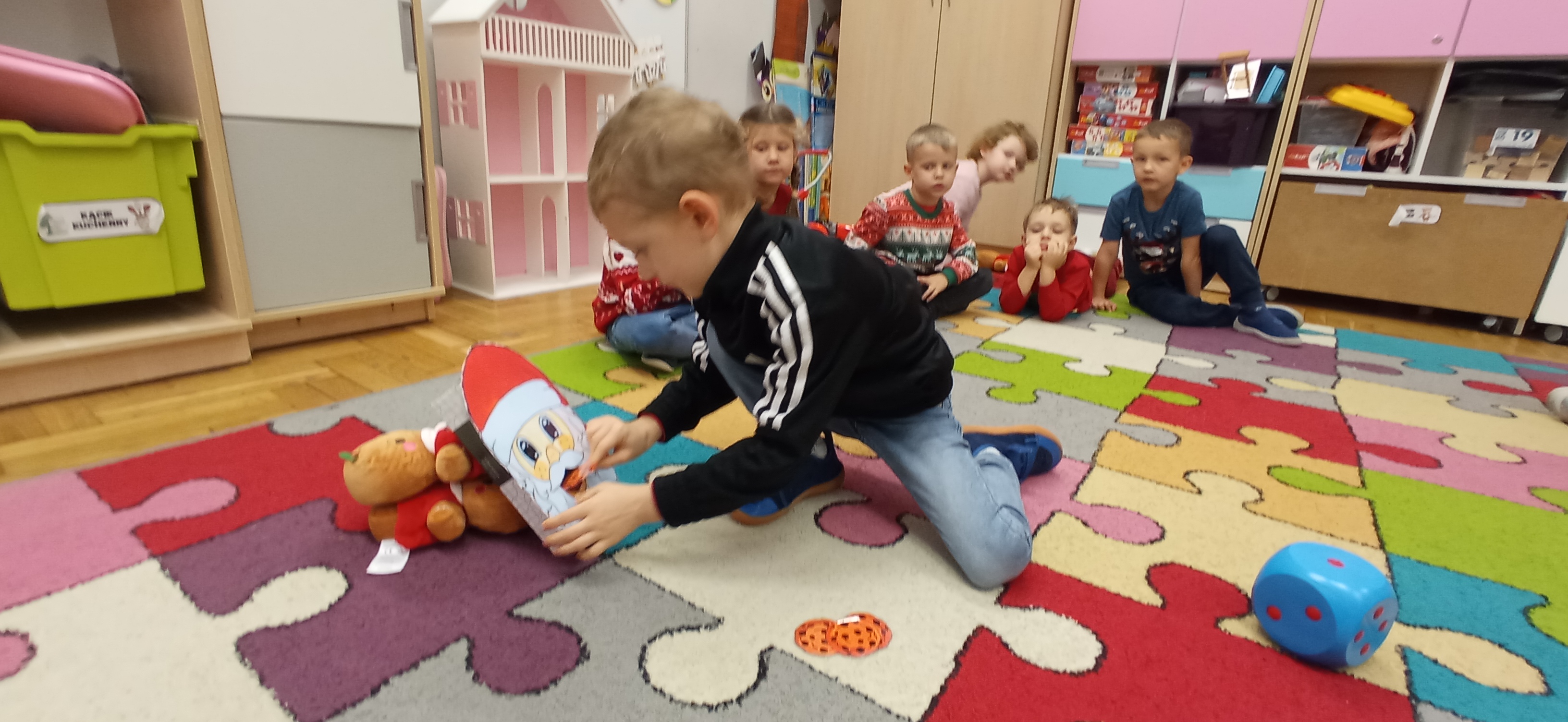 Grudzień, to przede wszystkim czas przygotowań do świąt Bożego Narodzenia. Uczenie się ról na występ, tworzenie świątecznych dekoracji. Dekorowanie pierniczków, ubieranie choinki. Rozmowy na temat tradycji bożonarodzeniowych.