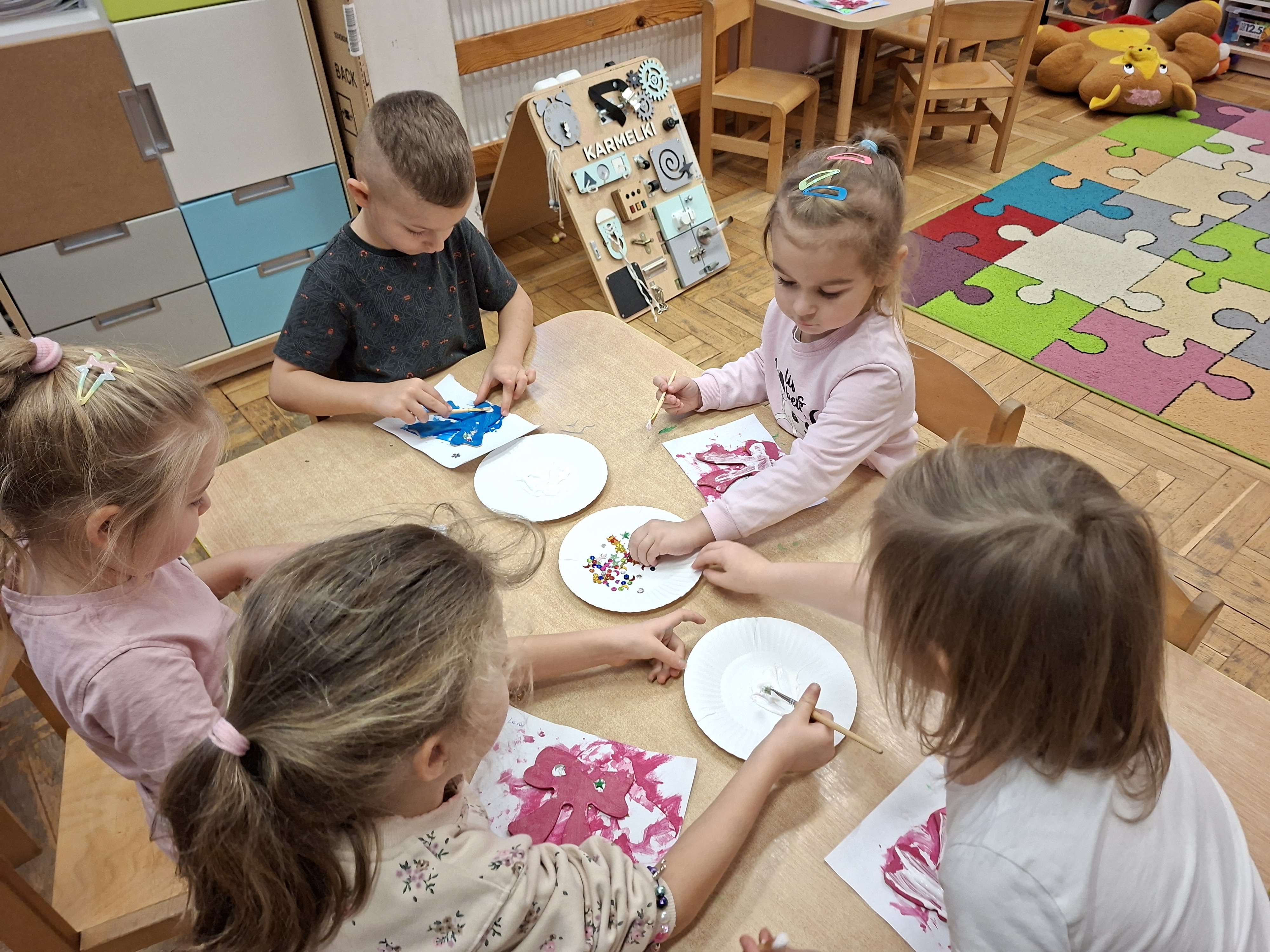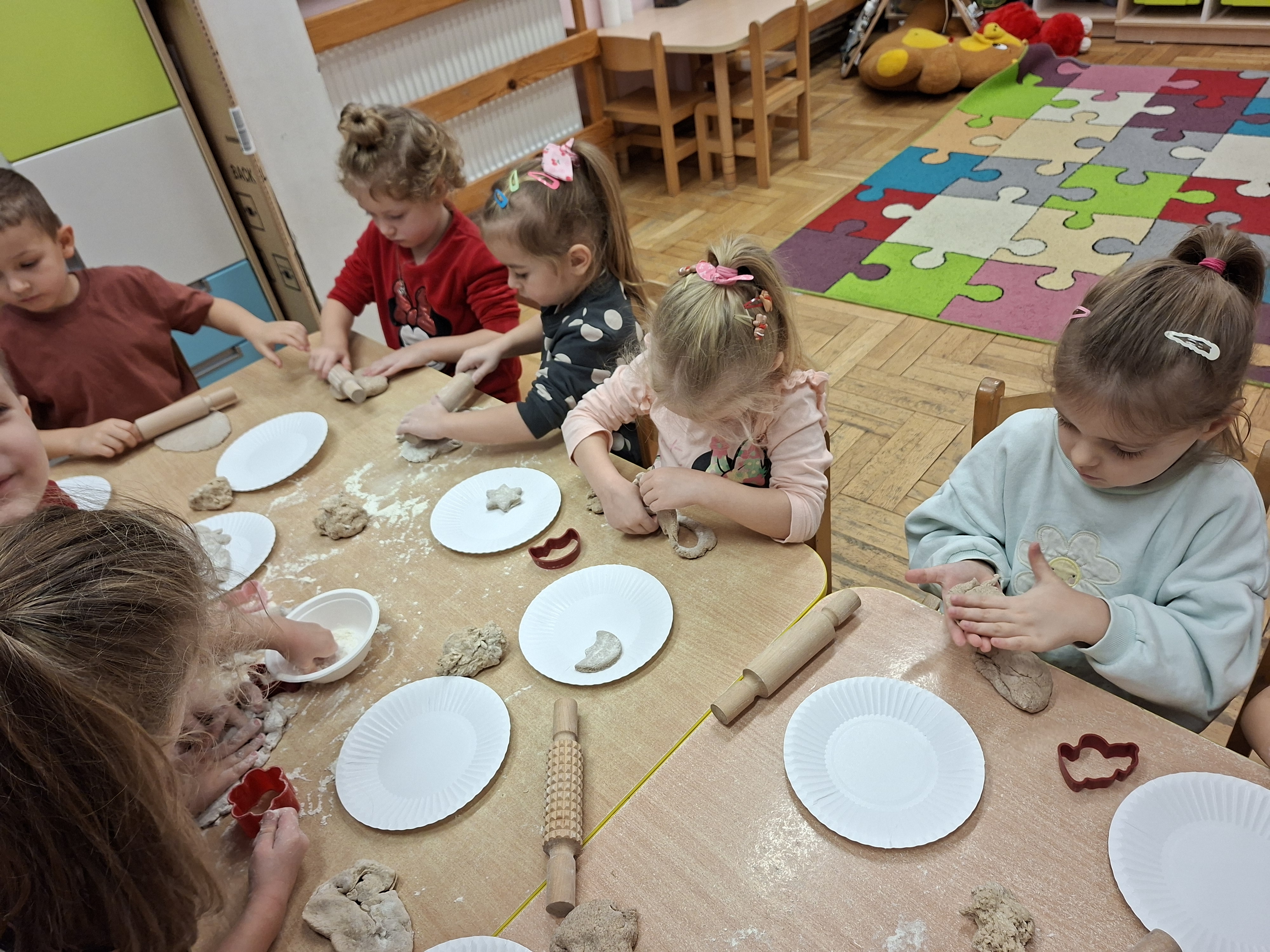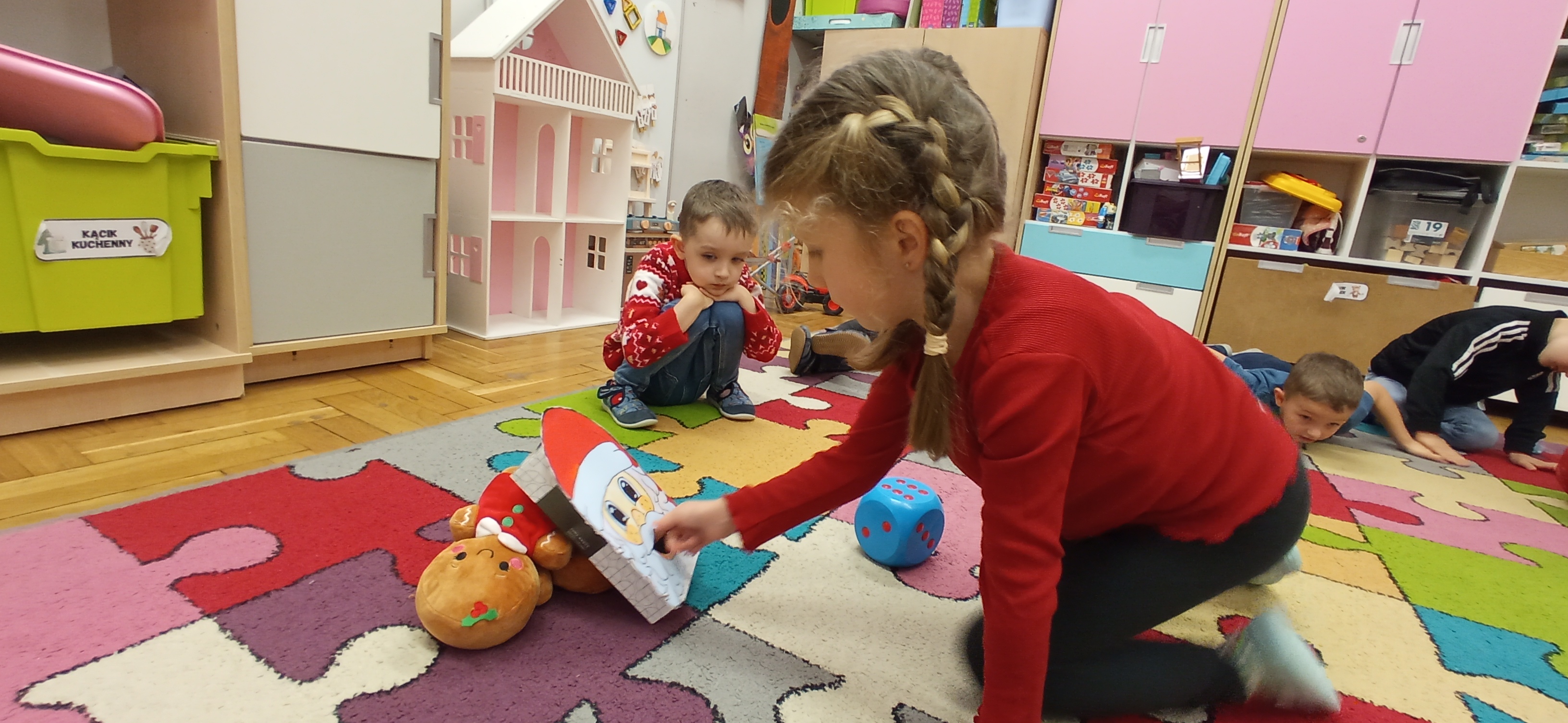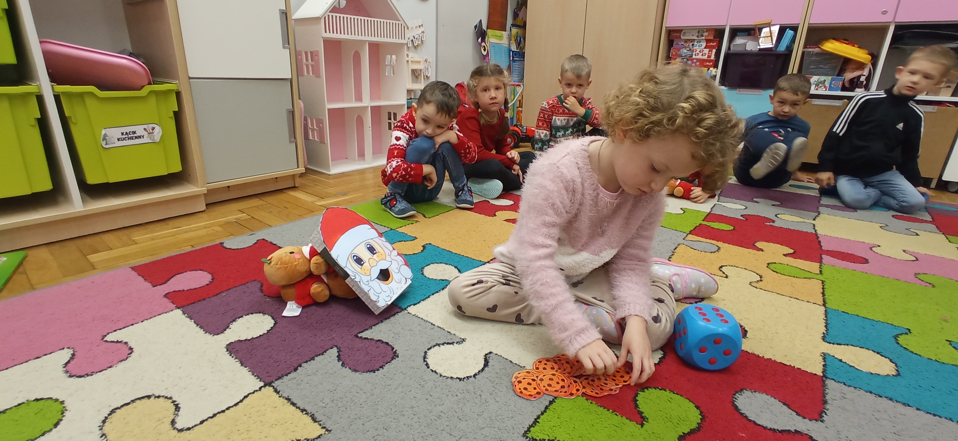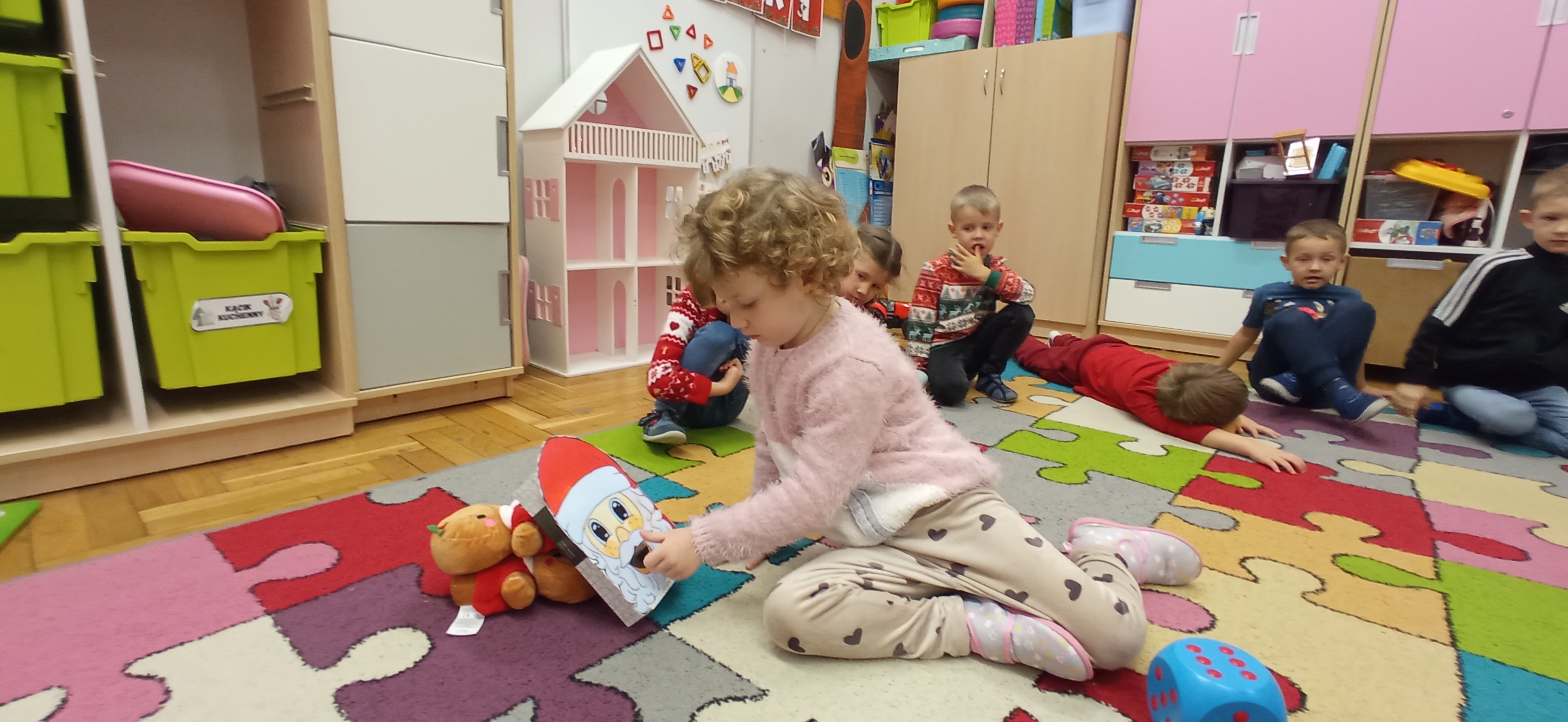 Grudzień, to przede wszystkim czas przygotowań do świąt Bożego Narodzenia. Uczenie się ról na występ, tworzenie świątecznych dekoracji. Dekorowanie pierniczków, ubieranie choinki. Rozmowy na temat tradycji bożonarodzeniowych.