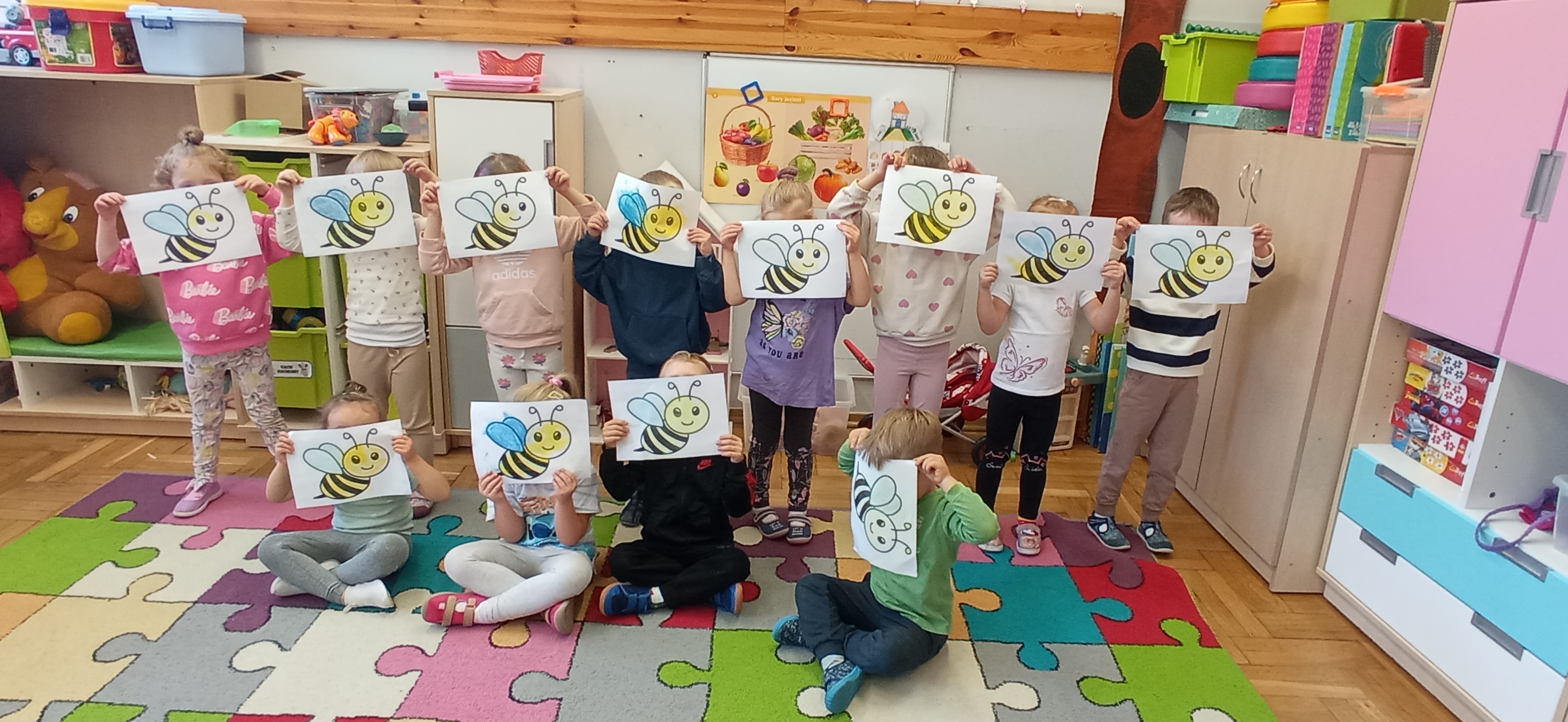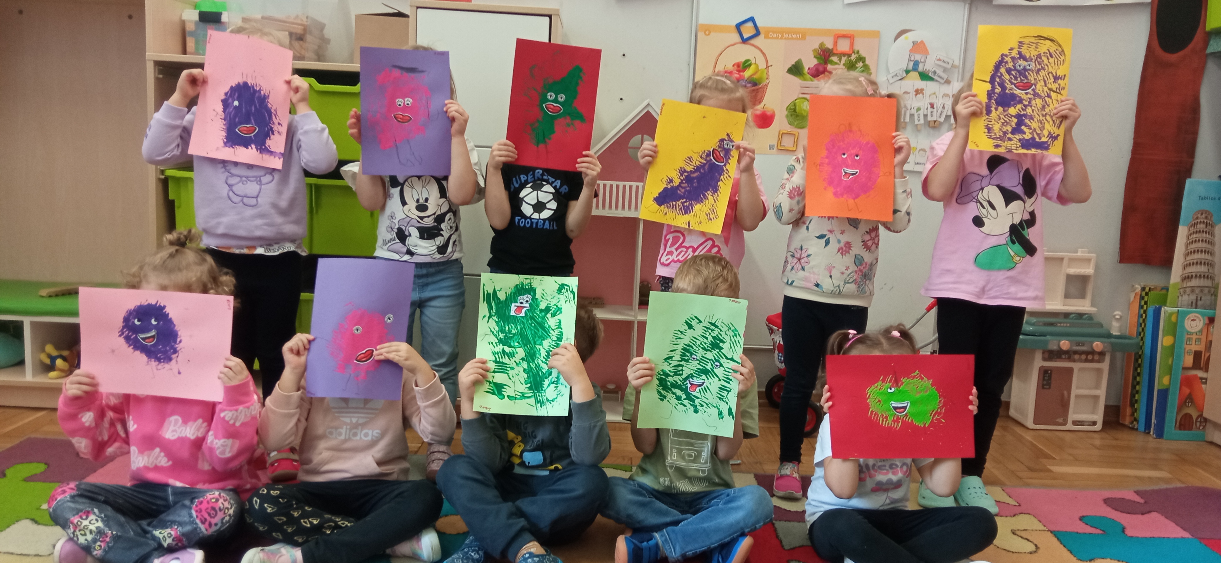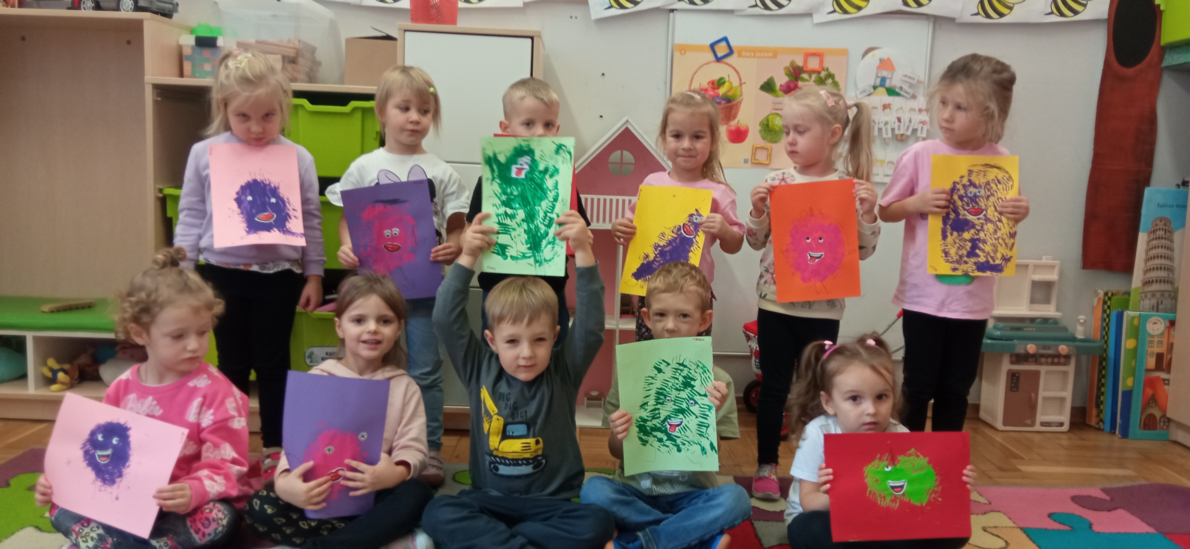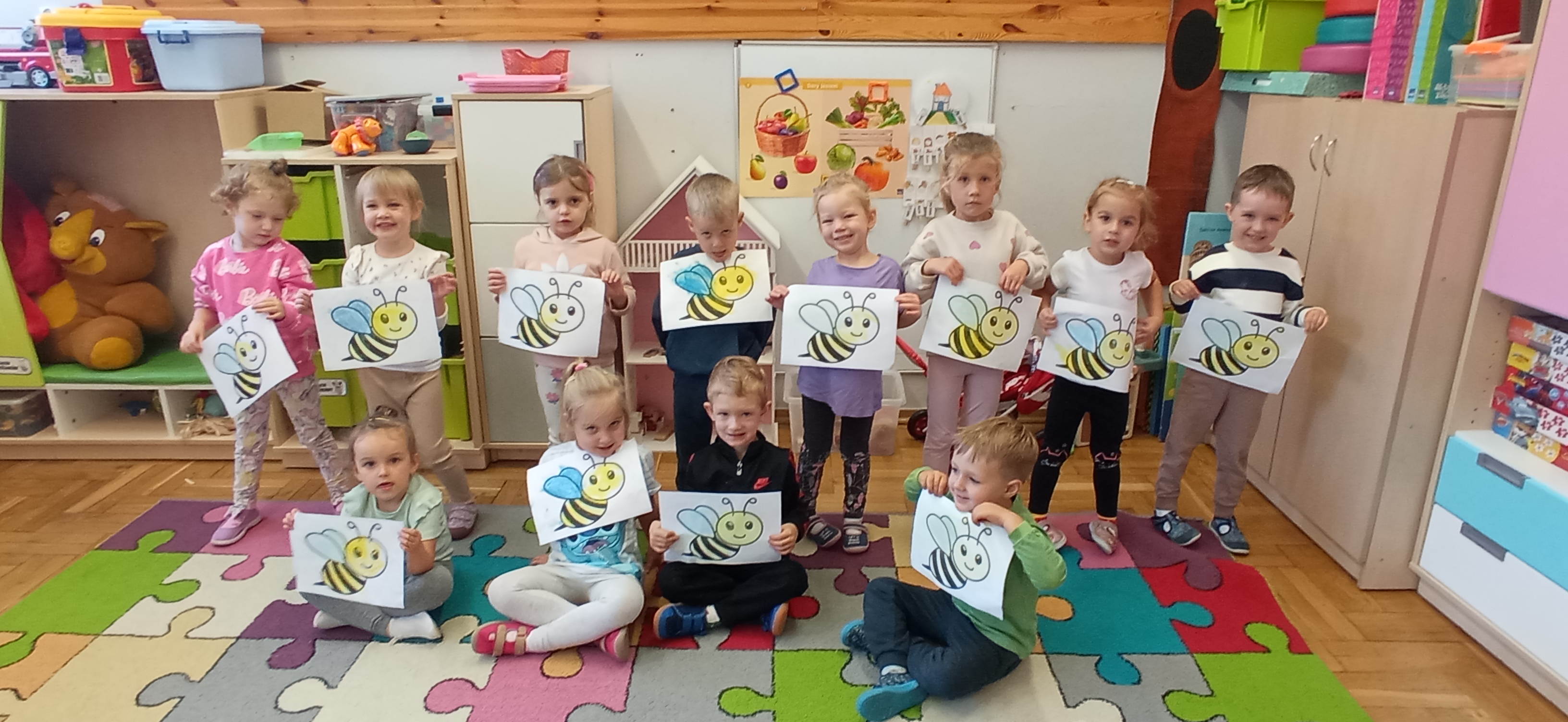 "Sówki" zakończyły realizację I modułu projektu Paluszkowe Maluchy. W trakcie wykonywania projektu poznały Pszczołę Genowefę i jej przyjaciół. Wspólnie odkrywały świat emocji, poznawały zjawiska atmosferyczne, ćwiczyły buźki. Z Pszczołą Genowefą rozmawiały o życzliwości, symbolach narodowych, a także mieszały kolory tworząc jesienne, sensoryczne drzewo.