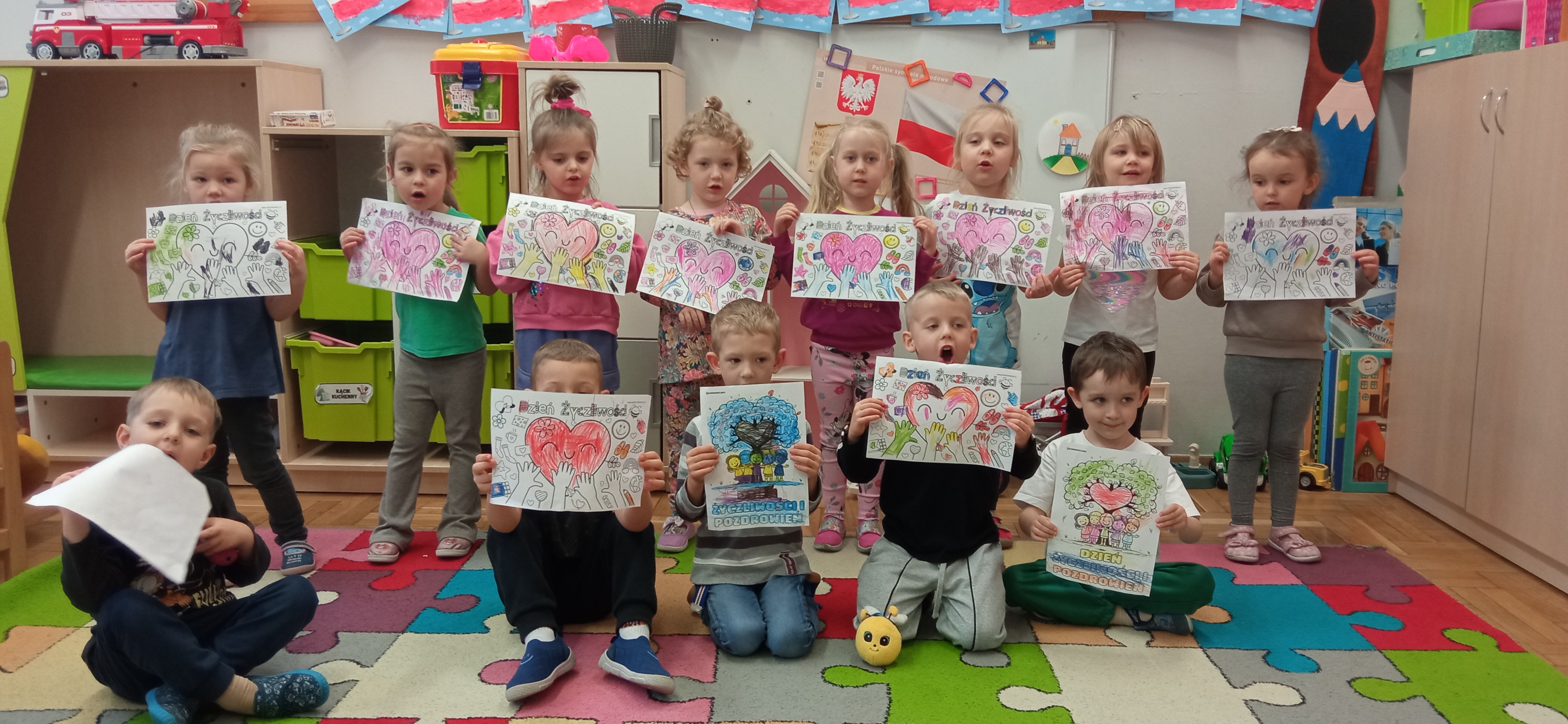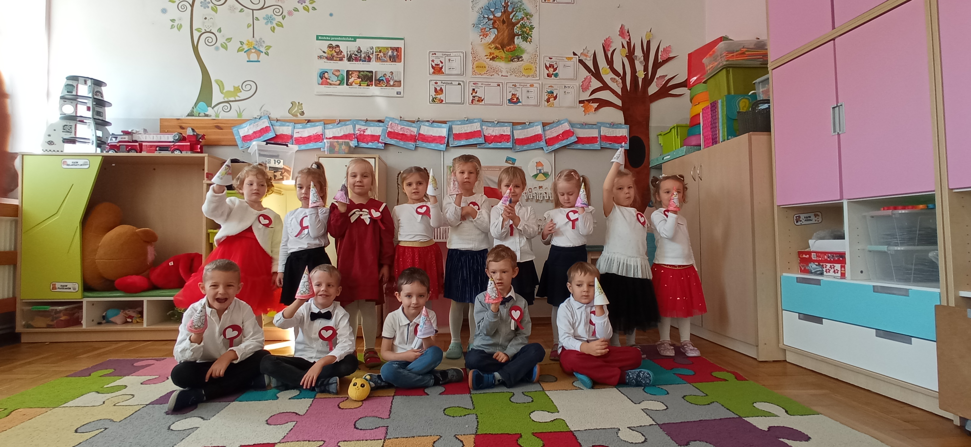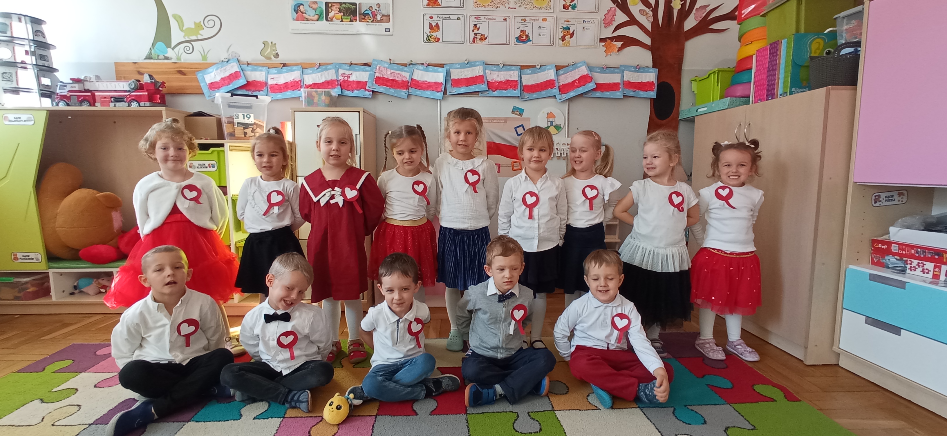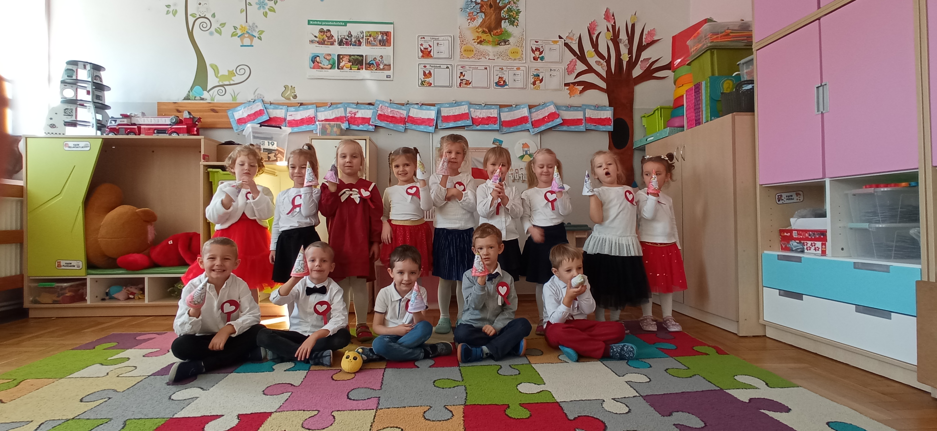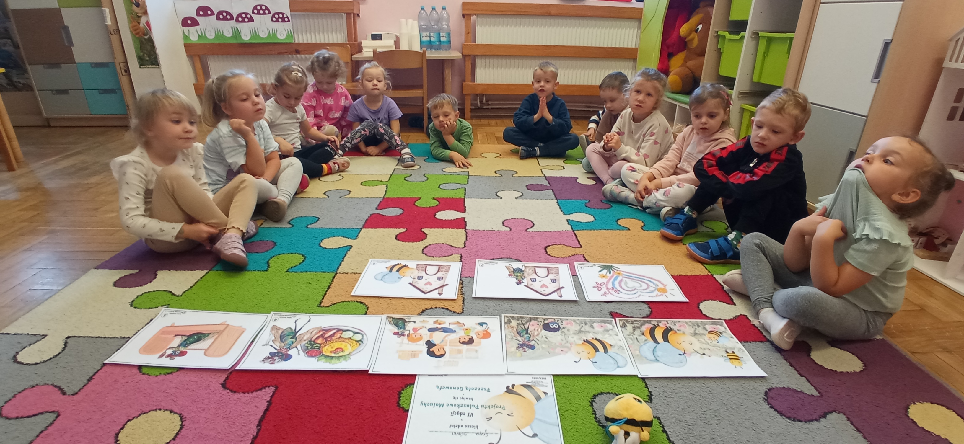 "Sówki" zakończyły realizację I modułu projektu Paluszkowe Maluchy. W trakcie wykonywania projektu poznały Pszczołę Genowefę i jej przyjaciół. Wspólnie odkrywały świat emocji, poznawały zjawiska atmosferyczne, ćwiczyły buźki. Z Pszczołą Genowefą rozmawiały o życzliwości, symbolach narodowych, a także mieszały kolory tworząc jesienne, sensoryczne drzewo.